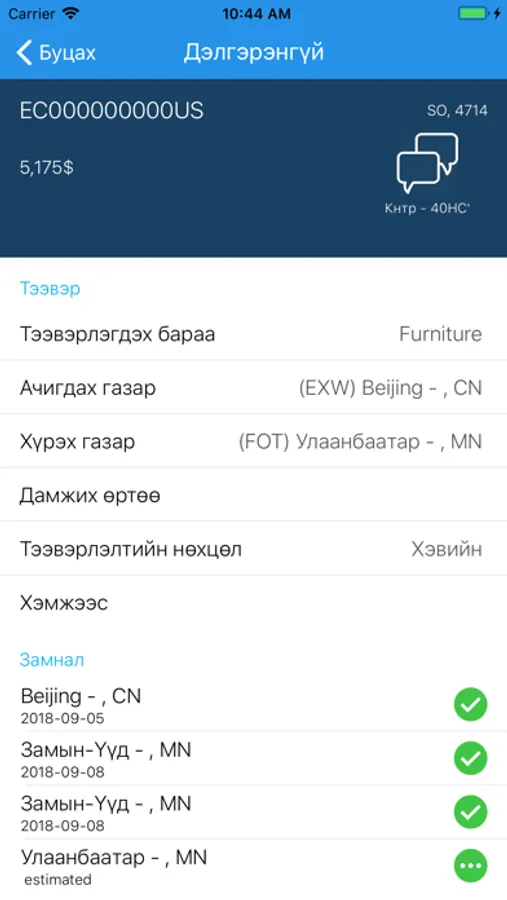 - Тээвэрлүүлсэн ачааны мэдээлэл