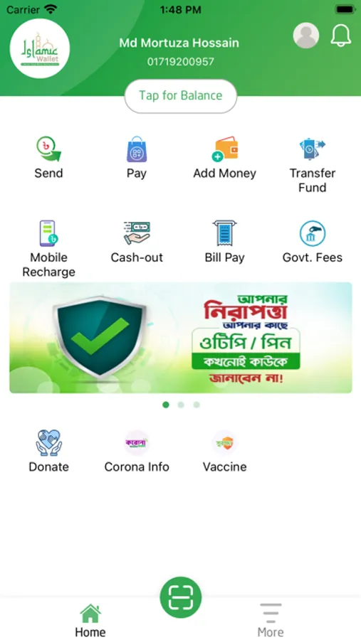 Customers’ money is safe and secure with Islamic Wallet. To secure the customers money, the fund will be maintained only in Shariah Compliant Islamic sectors.