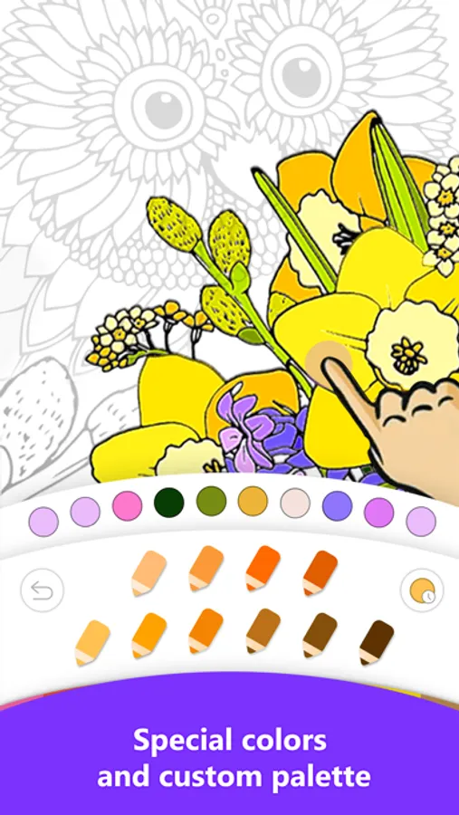 We provide lots of beautiful pictures for users to color/recolor and different levels for both beginners and experts. Choose your favorite animal/plant to color like owl, lion, birds, elephant, fish,butterflies,mandalas, flowers, secret garden, portraits. Categories are created for both girls and boys. We’re a free game for ipad/iphone that change anxiety into satisfying accomplishment.