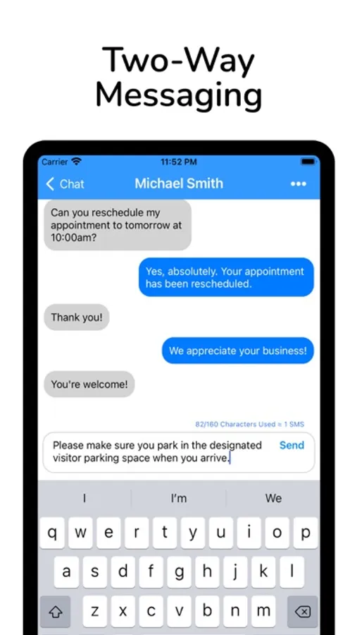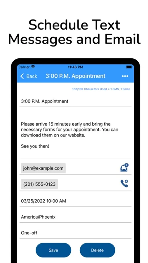 Use the app to send automatic appointment, marketing, billing, or general notification text message and email reminders.