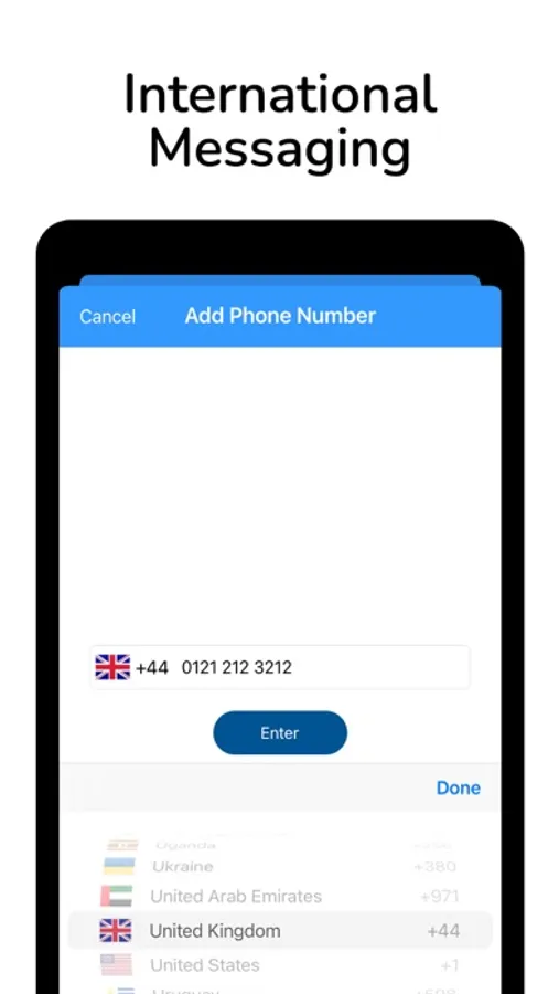 **Please note that you cannot send text messages from your personal phone number with this app. You can choose one of our available local U.S. phone numbers to send text messages with an upgraded plan.