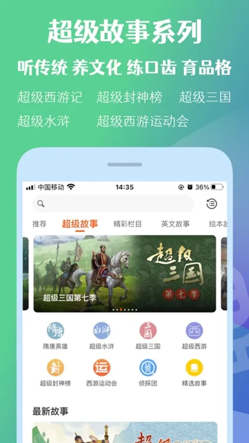 精彩故事:蒙施爷爷讲故事、利奥叔叔历险记、世界经典童话、中国经典故事、科普故事、习惯养成、畅销绘本等