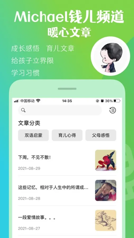 《Michael钱儿叫起神器》Michael钱儿每天1分钟叫起,内容包含小心情,中外名人格言和一首古诗,讲述小学生自己的生活小事,陪伴孩子早起