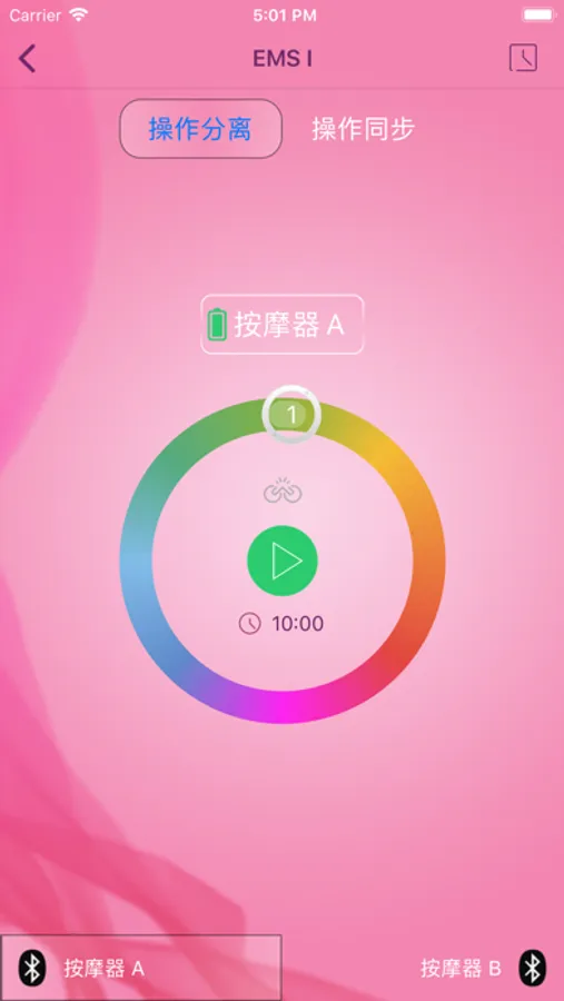 This App is used for a Bluetooth massager, can control two massagers at the same time.