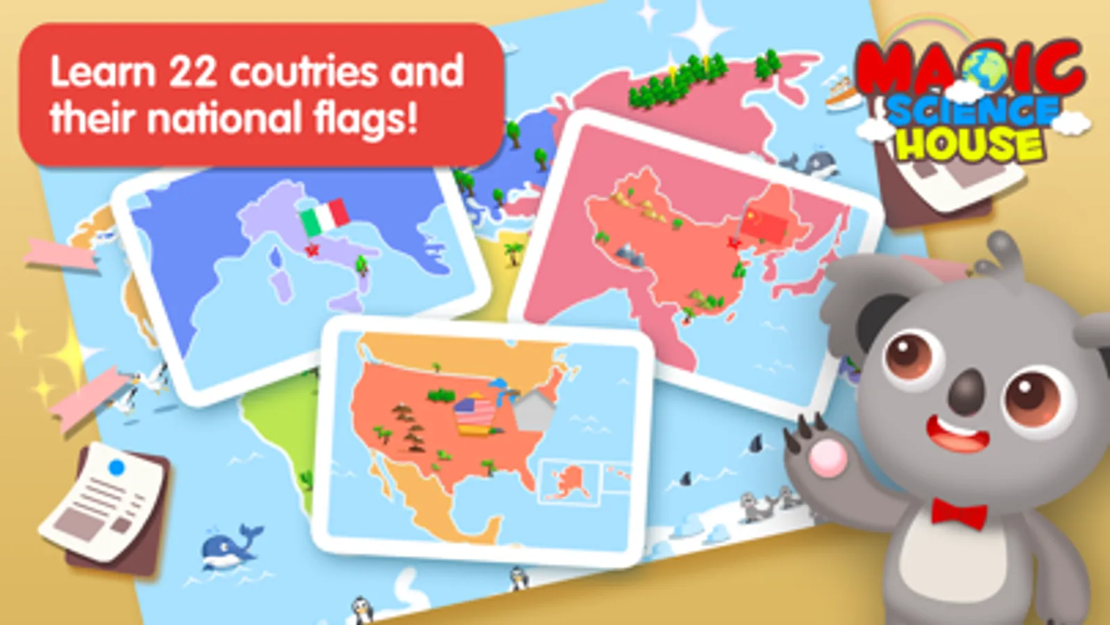 Go on a tour round the world with the koala. Children can learn about national flags and costumes, taste typical national dishes, play with cute animals and visit various famous historic and cultural sites in this app!