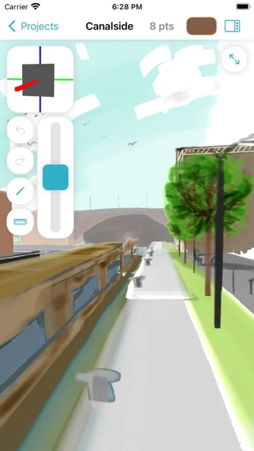 Metaspace uses touch camera controls, meaning that you use familiar multi-touch gestures to move around in the space, whilst using very little battery power. You may also turn on AR mode for something more exciting, where Metaspace will detect the world around you with the back camera, and you will find yourself walking inside of your drawing. AR is available from the Explore mode, not the editor.