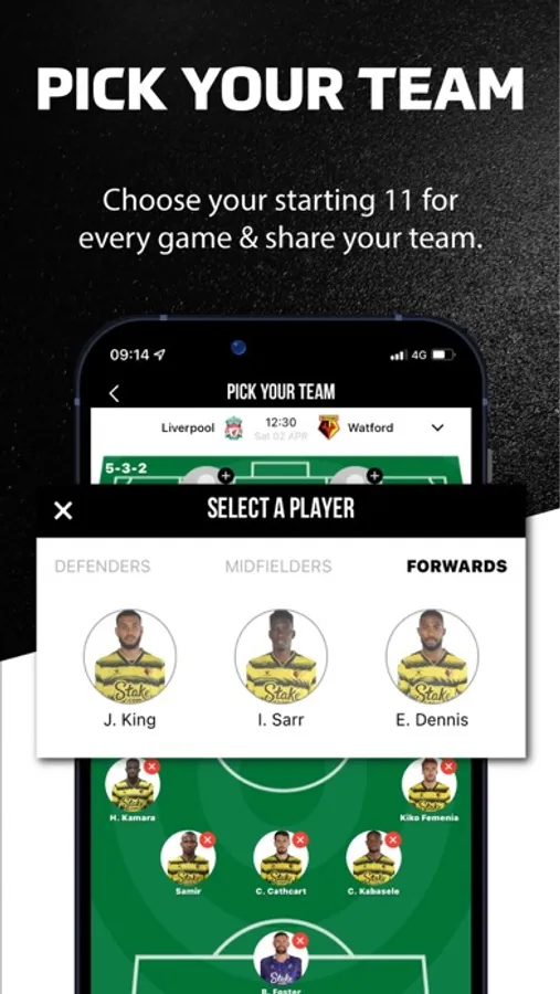 Choose your starting 11 for each Watford fixture on our line-up builder and share with your friends socially.