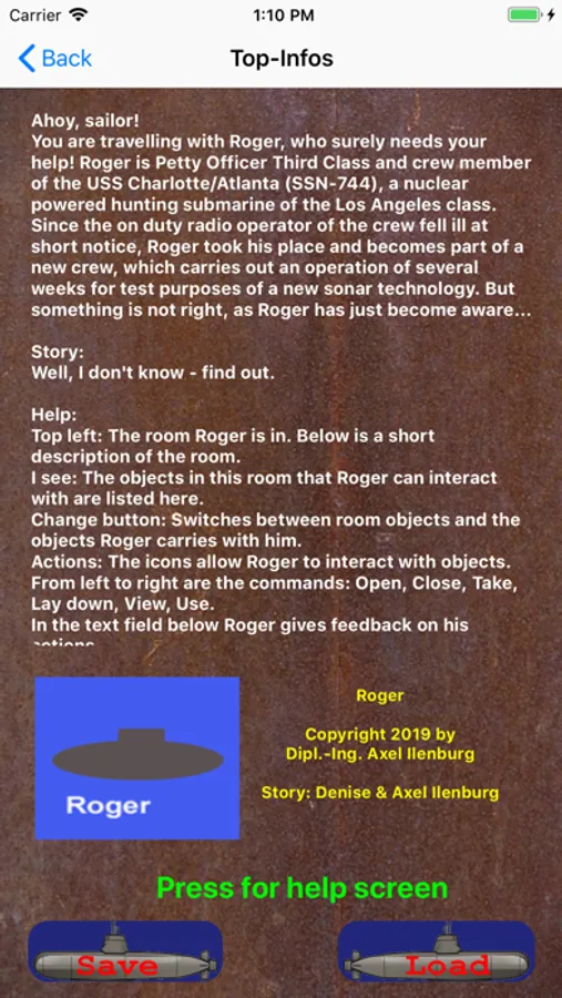 You are travelling with Roger, who surely needs your help! Roger is Petty Officer Third Class and crew member of the USS Charlotte/Atlanta (SSN-744), a nuclear powered hunting submarine of the Los Angeles class. Since the on duty radio operator of the crew fell ill at short notice, Roger took his place and becomes part of a new crew, which carries out an operation of several weeks for test purposes of a new sonar technology. But something is not right...