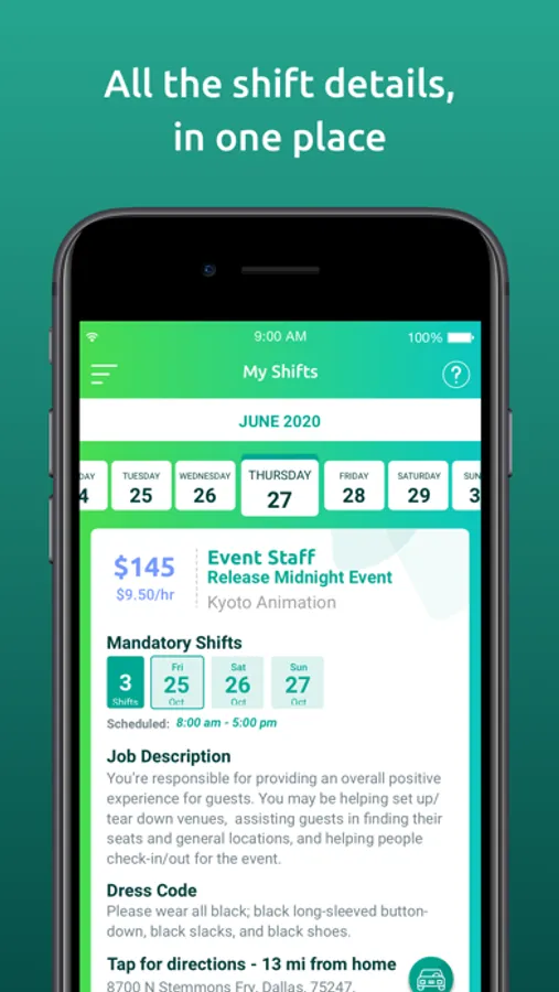 How it works: Once you download the Adia app, you’ll create a profile, telling us your interests, skills, and availability. You’ll go through one-and-done onboarding to get hired. Once your profile is activated, you can book any full-time, part-time, and pick-up gigs you see in the app.