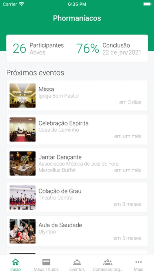 Visualize seus boletos, datas dos eventos de seu fundo de formatura, veja os documentos, contatos e muito mais.