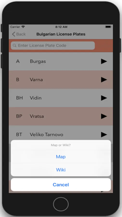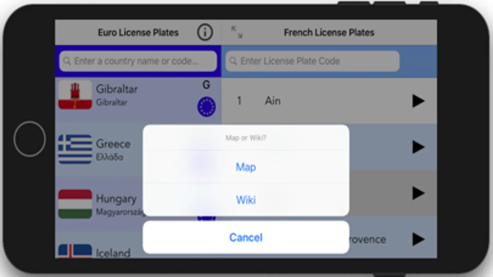 Select a plate and you'll see options to show a regional map and/or, the town's wiki page. Some states do not organize their license plates by geographical regions, and in these cases, you'll know where the car is from, and EuroPlates will display a country map.