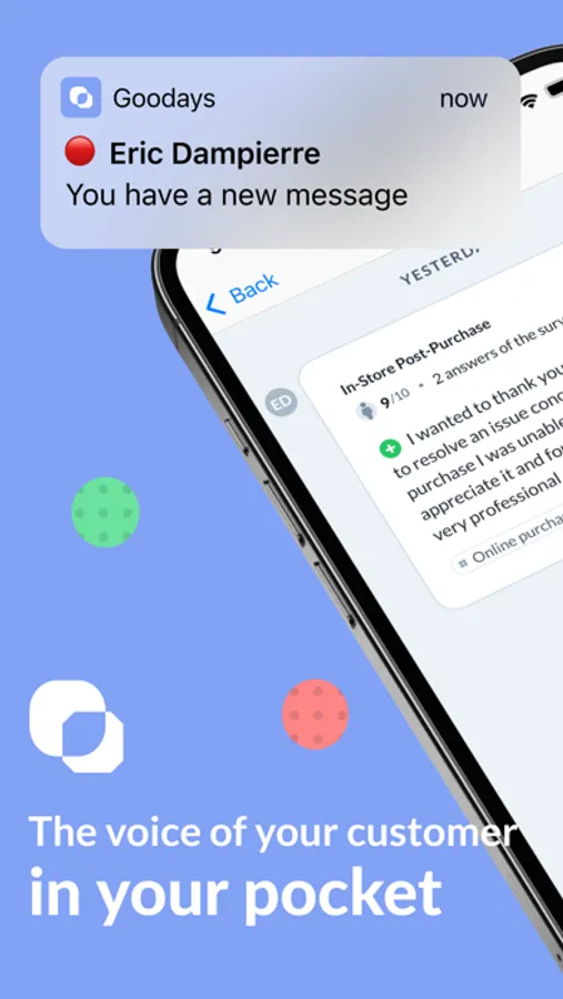 The voice of your clients in your pocket ! Goodays Business is for all professionals willing to improve their customers' satisfaction : Point of Sales' Manager, District or Regional Director, Customer Satisfaction Manager, etc...