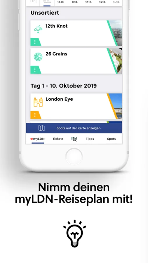 Wenn euch ein Spot gefällt, könnt ihr ihn favorisieren und zu eurem persönlichen Reiseplaner myLDN hinzufügen. Neben den Spots könnt ihr auch Touren, Attraktionen und Sehenswürdigkeiten speichern und eure Reise dadurch individuell planen.