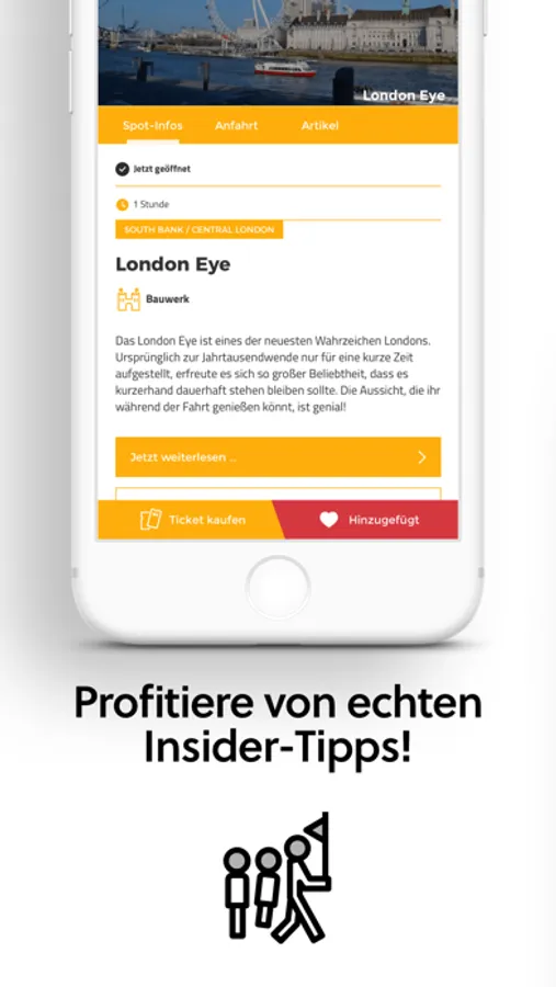 In der Detailansicht der Spots findet ihr eine ausführliche Beschreibung. Dazu gibt es Infos über die Anreise mit der Tube und auch die Öffnungszeiten der Locations. Persönliche Insider-Tipps unserer Locals dürfen natürlich auch hier nicht fehlen!