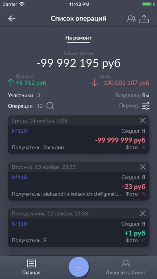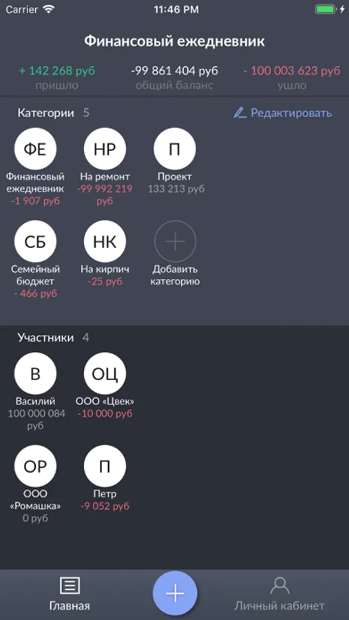 Ежедневник управлениями складами и финансами - это прекрасный инструмент для учета перемещения денежных средств. Подходит как для контроля и учета семейных средств, так и для корпоративного бюджета. Создавайте свои категории, приглашайте других участников и следите за тем, чтобы ни одна копейка не была потрачена зря! Экспортируйте ежемесячные отчеты, сверяйте баланс по категории и участникам.