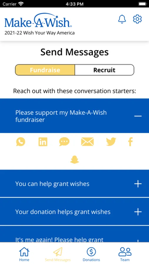 Do your fundraising on the go with your Wish Your Way application. Update your page, send emails, and check your progress – all from the palm of your hand.