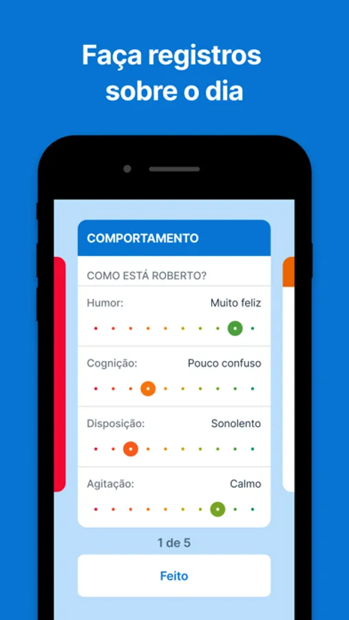 - Registre dados sobre o comportamento, ocorrências, atividades, eliminações e sinais vitais.