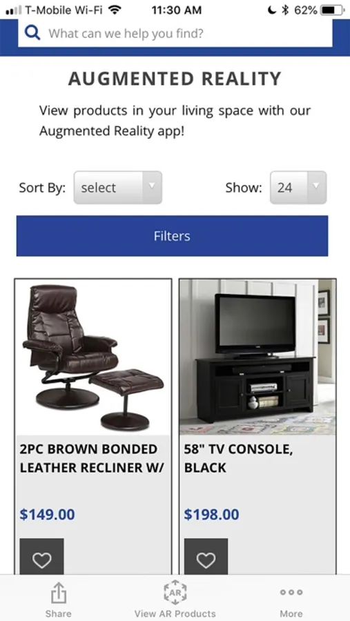 To use the app, simply select an item that is available in AR, tap the "View in AR" button on the product page, point your device at the floor following onscreen guidance and place it directly in your room! Once placed, you can move, rotate, and view the size and color options of your item on the same screen.