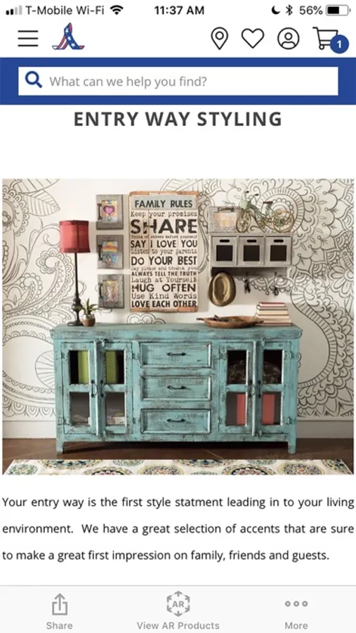 In this furniture visualization app, you can view American Furniture Warehouse items in your space using augmented reality and explore different styles. Includes AR viewing, shopping features, design tips, and care guides.