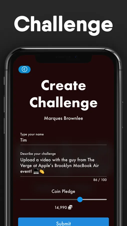 Chally let’s you immerse yourself in the content of your favorite creator with our autoplay feature. Additionally, you collect coins for watching videos. Use the coins to challenge your favorite creator on their next video and share your challenge to collect coins together with your friends. More collected coins mean more visibility for your challenge and a greater chance to have your challenge accepted by the creator. When accepting a challenge, the creators mention the initiator and the top challenge contributors in their video. After successfully uploading the challenge video, the creators receive the coin equivalent from Chally.