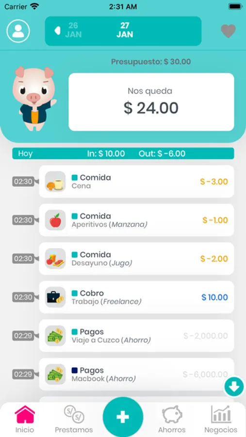 All your transactions will be reflected in your accounts, and you can see weekly if your income is greater than your expenses.