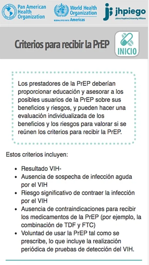 Esta herramienta para la implementación de la PrEP está constituida por módulos destinados a diversos interesados directos, cuyo propósito es apoyarlos en la consideración, planificación, introducción e implementación de la PrEP por vía oral. Estos módulos pueden usarse por separado o en combinación. Hay además un módulo dirigido a las personas interesadas en tomar la PrEP o que ya la están tomando.