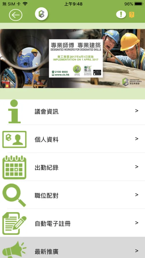 easyJob is a one-stop e-registration, job searching, obtaining latest industry and CIC news, getting registered worker information platform. Existing workers can renew update their worker registration anywhere and no need to visit the CIC Services Centers in person. New joins can also book the service in advance to avoid waiting in queues. Workers can find jobs easily via the App and jobs suitable to the workers will be automatically matched and notified workers. A user friendly and good assistance to all construction workers.
