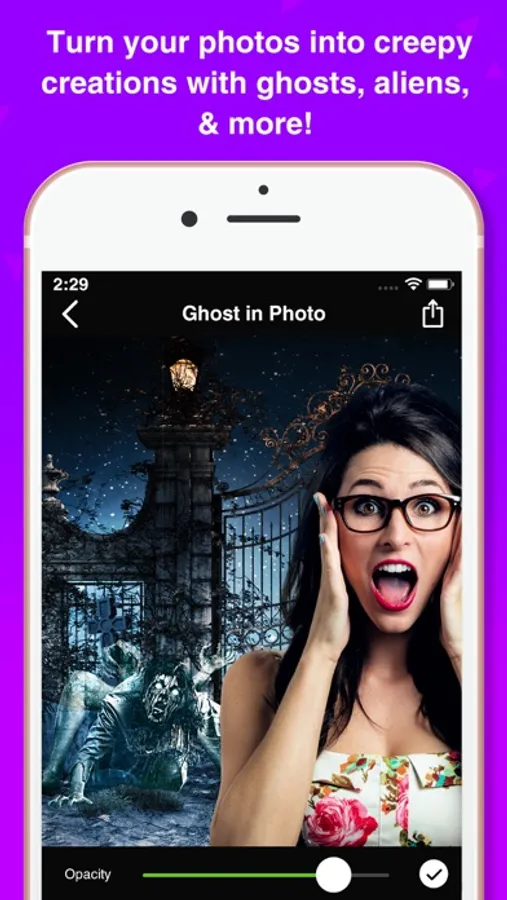 Ghosts in photos helps you with UFO Photos, Bigfoot Picture and also provide Ghost frames and Halloween Frames. Ghost in Photos is a must have app for Halloween. Create Scary Picture with ghost photo maker.