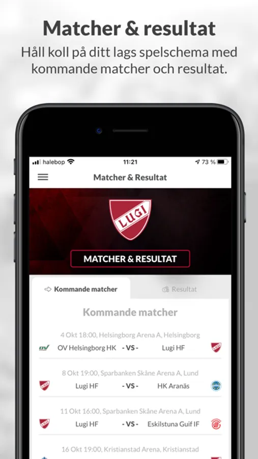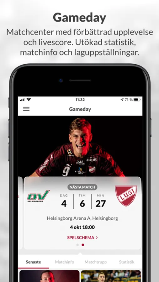 Gameday - Lugi är det digitala matchprogram för dam- och herrlaget. Här hittar du senaste nyheterna, spelarintervjuer, statistik från tidigare matcher och aktuella trupper. Du kan även följa matcherna via live score.