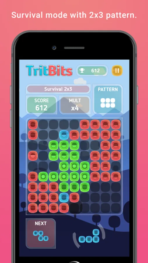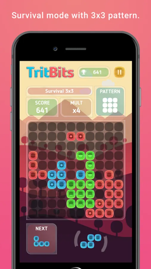 TritBits game lets you combine puzzle blocks, build and destroy structures by creating patterns on the game field. Enjoy addicting brain training exercises with the power of TritBits!