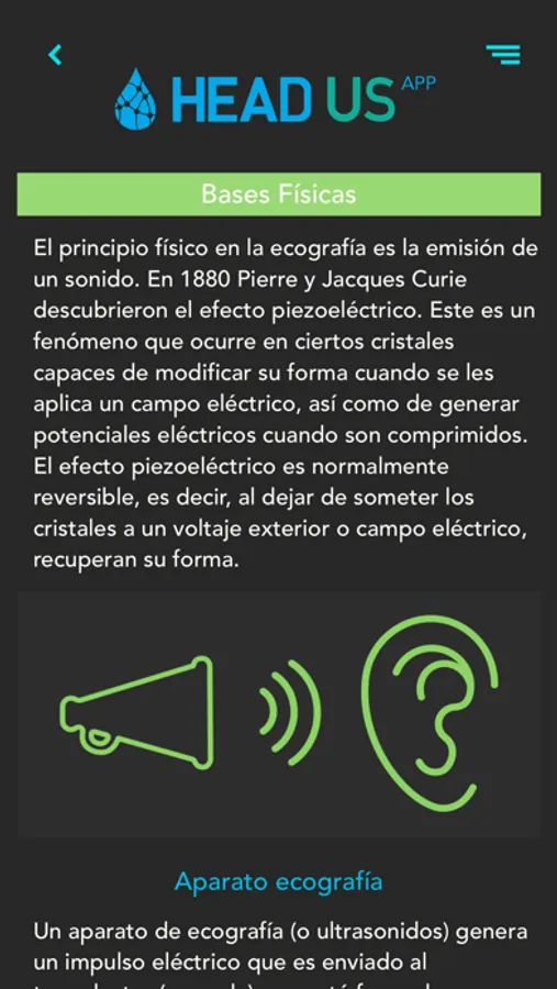 Esta aplicación dirigida a médicos, es una ayuda para aprender el sistema HEAD-US, pero no reemplaza un aprendizaje reglado, ni cualifica para su uso.