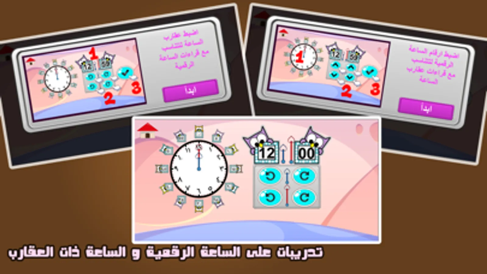 التدريبات اما تحريك عقارب الساعة لتتناسب مع قراءات الساعة الرقمية