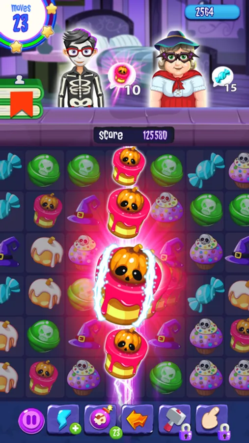 This Allhallowe’en puzzle game offers tons of missions. Each level has a different mission to complete and the difficulty will increase at each level. The main mission here is match 3 candies of the same taste and deliver them to your customers. Your customers are different and they will be wearing some amazing Halloween Costumes. Say happy Halloween to them and deliver their order without mistakes to win each level and go forward in this addictive Halloween witch game. Keep in mind that the gameplay will start out simple, but things will get more and more complicated and challenging.