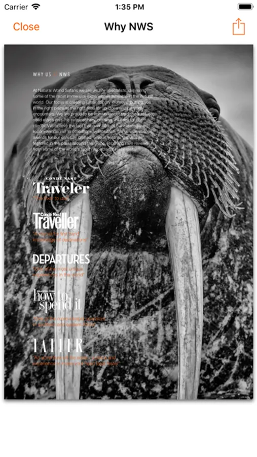 Natural World Safaris are “a marvel for first-hand knowledge of destinations” according to Condé Nast Traveller. We are the innovators of natural world travel and wildlife safaris, creating each of our clients their very own journey into the extraordinary – and now we bring you our handy travel app.