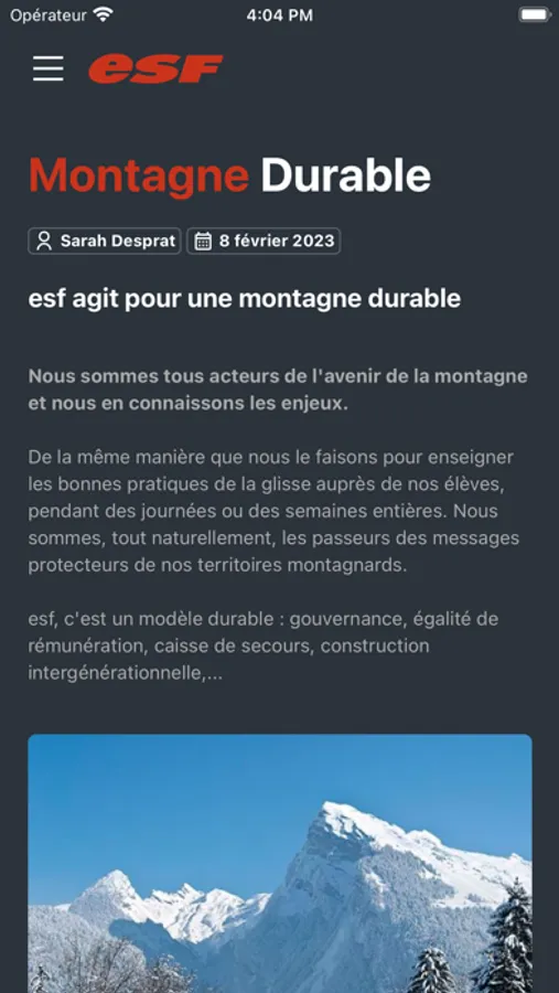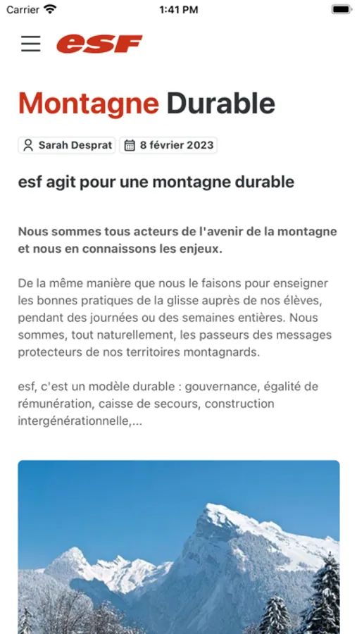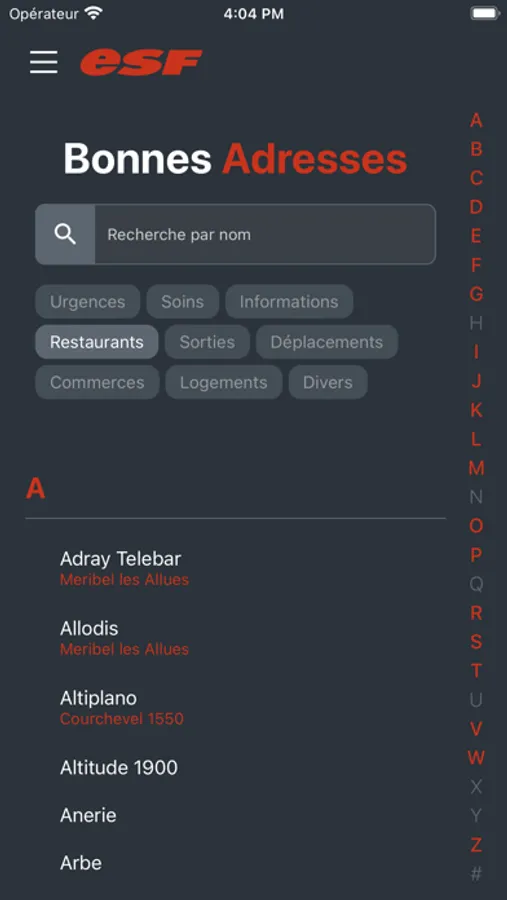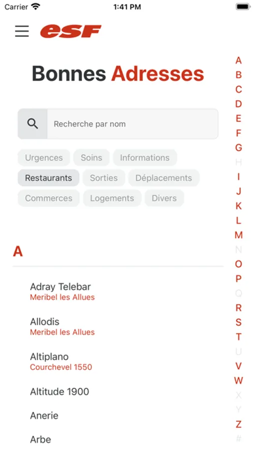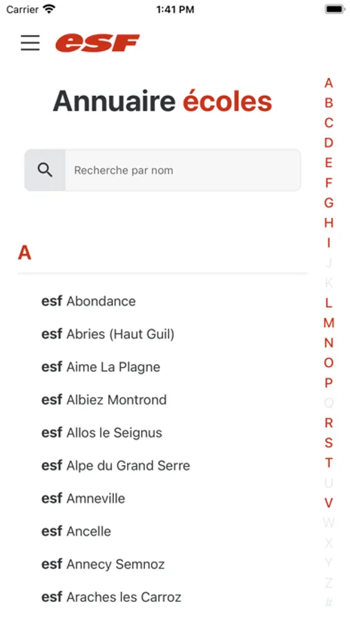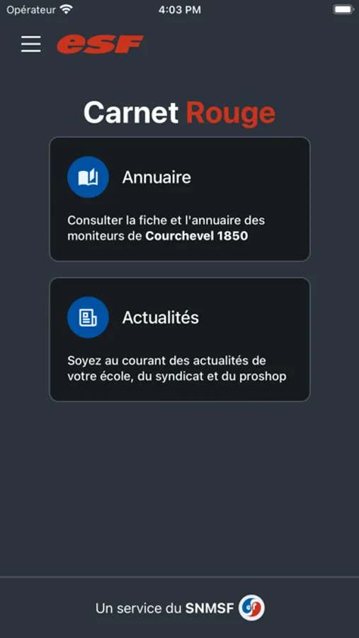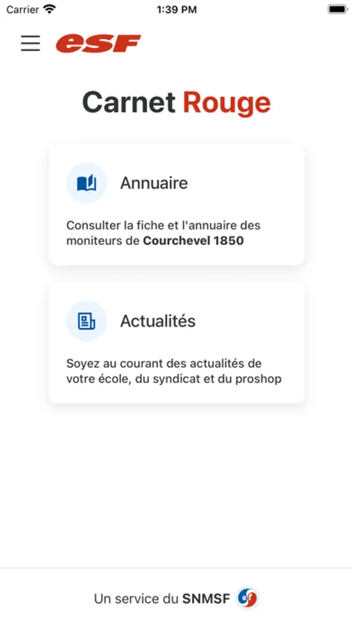 L'application ESF Carnet Rouge est une application permettant de consulter une multitude d'informations sur toutes les ESF.