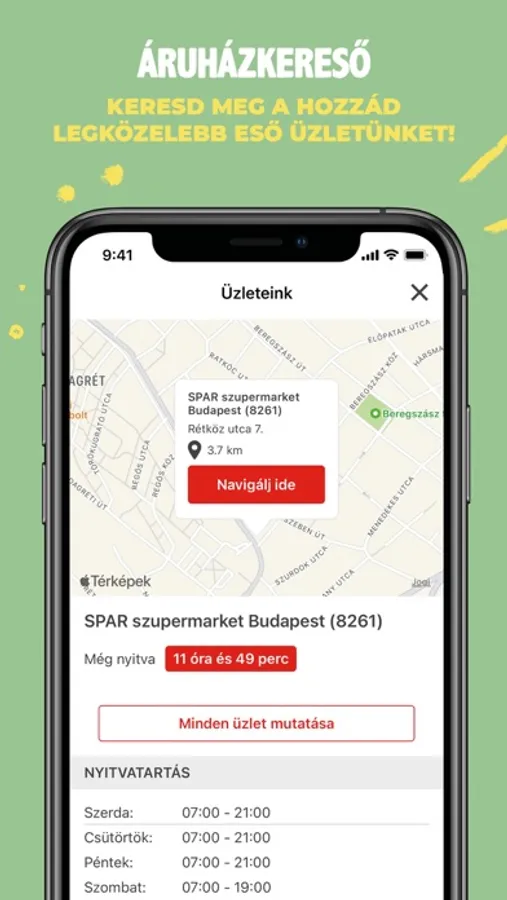 • Áruházkereső: Érj el minden fontos információt üzleteinkről, és helyadataid megadásával találd meg a hozzád legközelebb lévőt és navigálj oda!