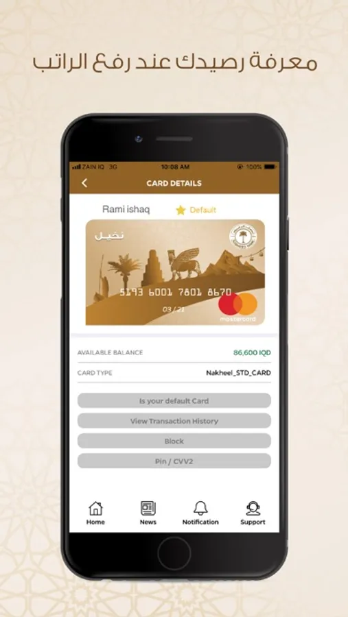 - اعرض بطاقاتك ورصيد حسابك في أي وقت