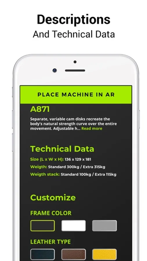 Simply tap on the equipment of your choice and find out more through the product description, as well as the specifications of the technical data.