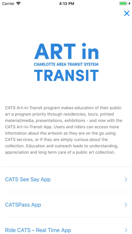 CATS Art in Transit program makes education of their public art a program priority through residencies, tours, printed material/media, presentations, exhibitions - and now with the CATS Art in Transit App. Users and riders can access more information about the artwork as they are on the go using CATS services, or if they are simply curious about the collection. Education and outreach leads to understanding, appreciation and long term care of a public art collection.