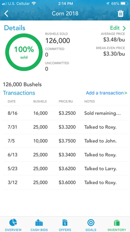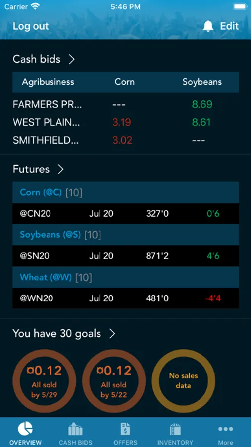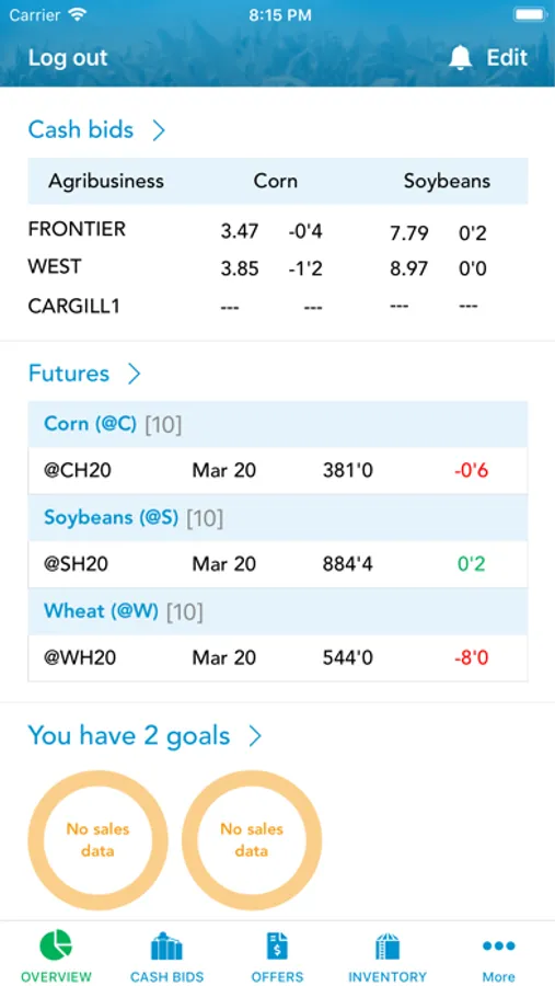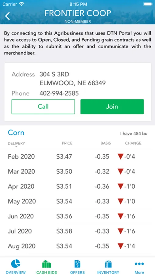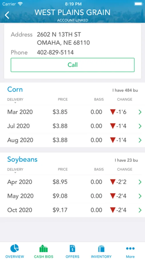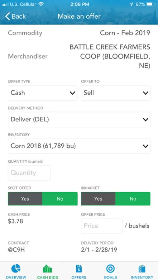 • Offers – Initiate and complete grain sales with minimal data entry and authentication hassles. Use the call capability to have your buyer enter your offer and push the transaction to the app for your confirmation.