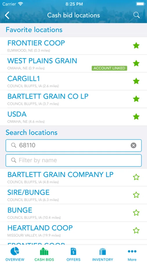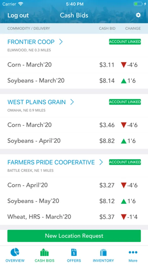 • Cash Bids - Access your closest grain buyers and their published grain prices in a single view. Filter using your personal criteria and select preferred partners to see bids.