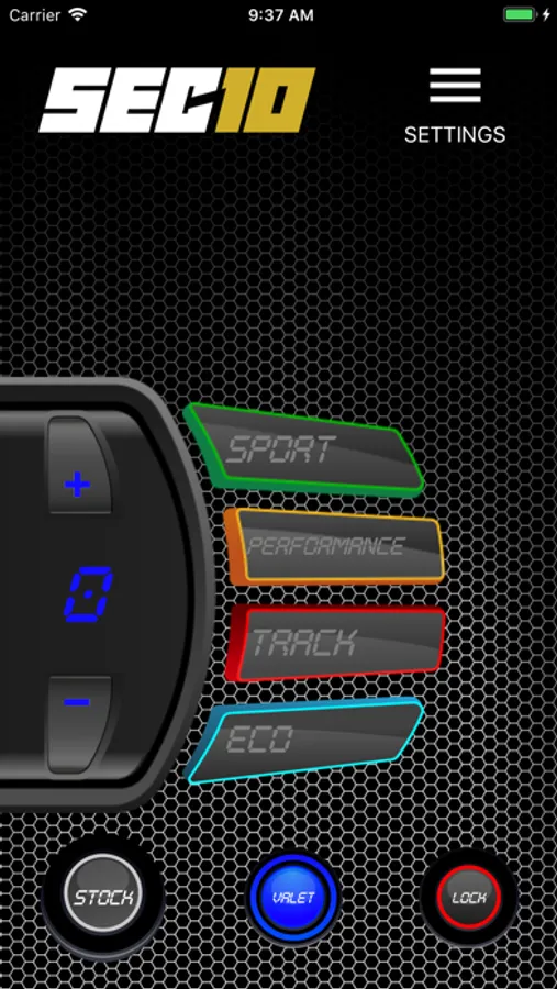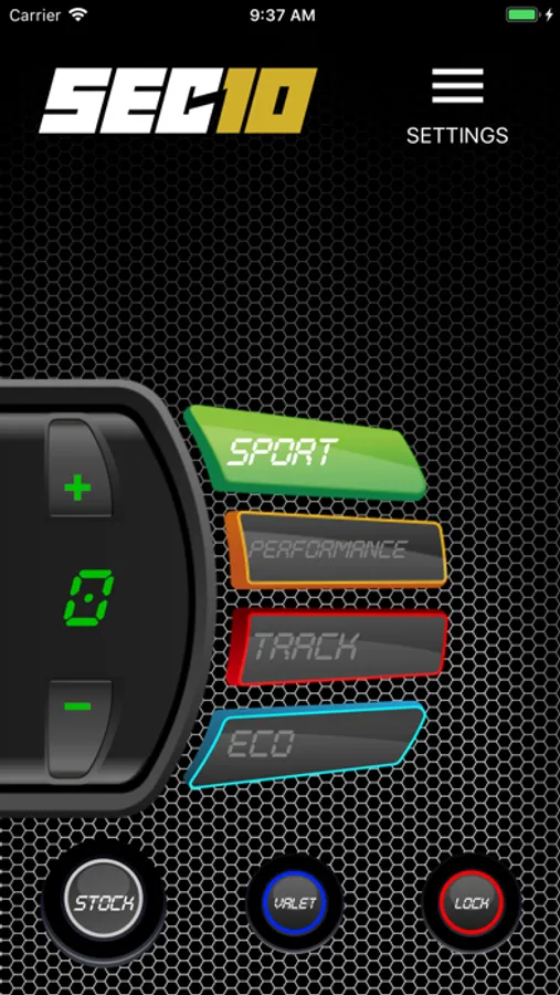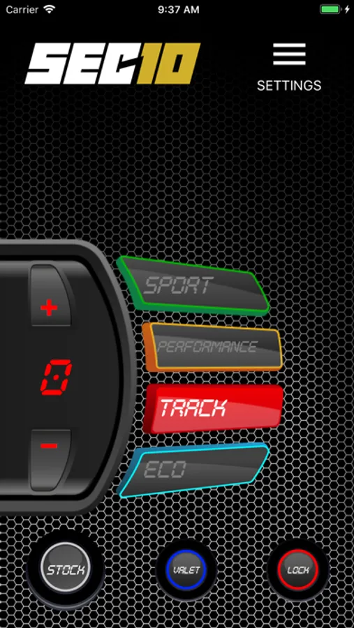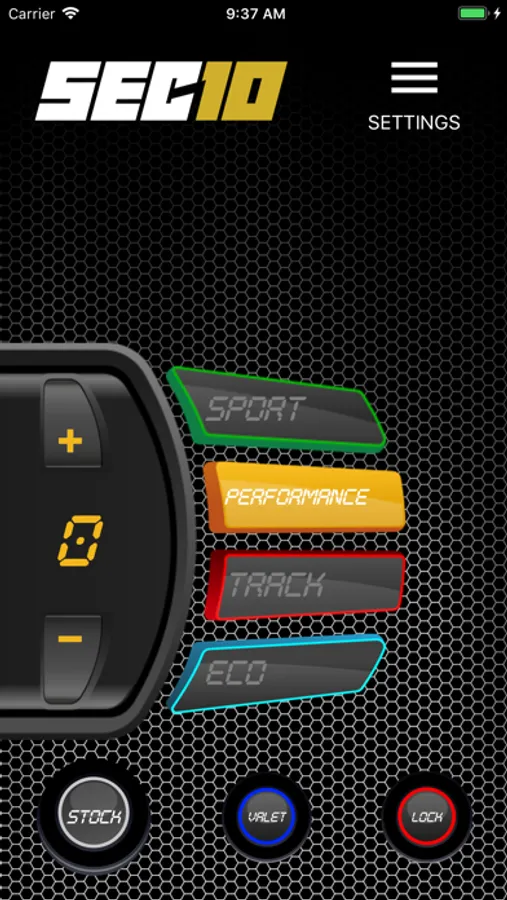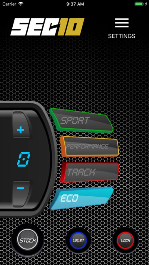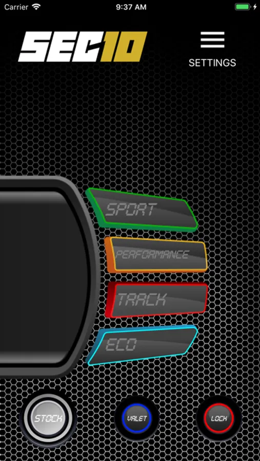 You can control all SEC10 features and driving modes from your smartphone: Stock, Eco, Sport, Performance, Track, Valet and Pedal Lock.