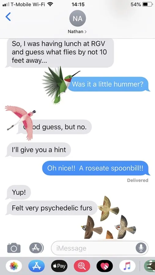 Express yourself in new ways with Texas bird stickers you can put anywhere in your chat. Scale, rotate and layer stickers — you can even stick them on photos you send or receive. Use Texas bird stickers to add a touch of Texas to your iMessages!