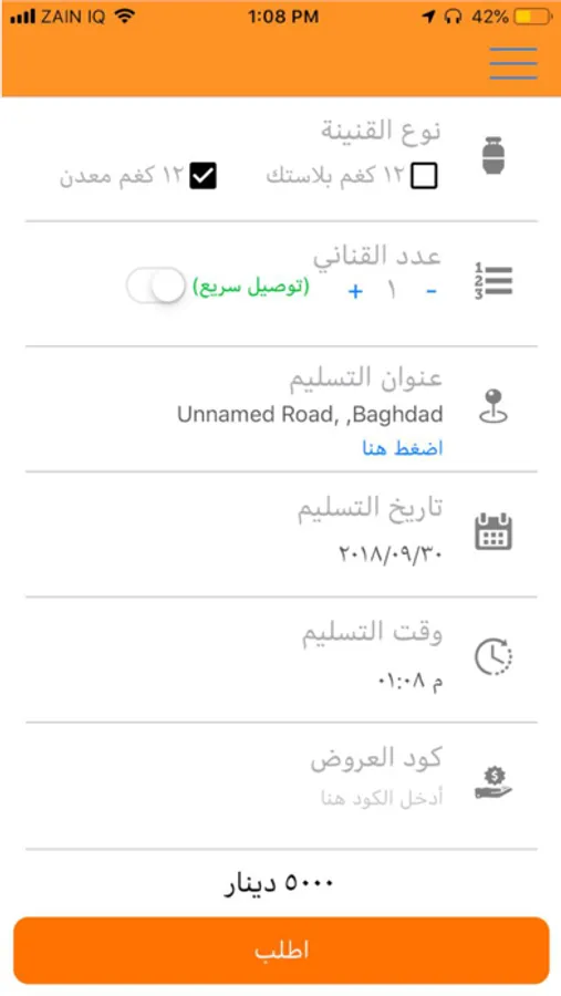 هو التطبيق الاول في العراق الذي يتيح لك سهولة الحصول على قنينة غاز بكبسة زر