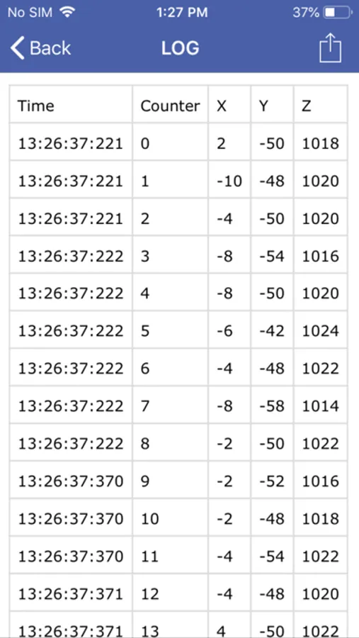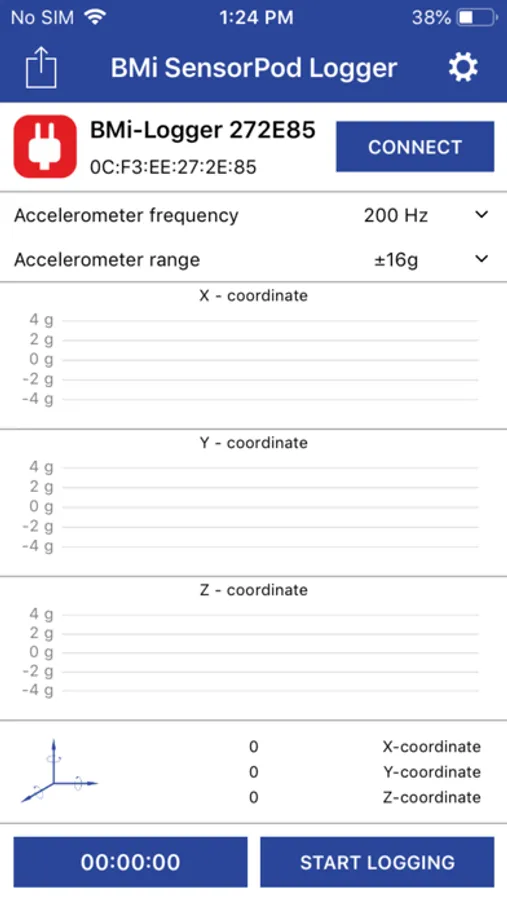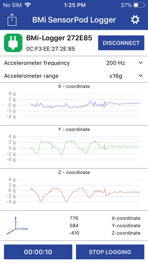 It is the best way to log the acceleration data from the 3D accelerometer that is integrated in BMi SensorPod logger. The format of logged data is CSV file and it can be shared via email, Dropbox, google drive, etc. The SensorPod can be configured for ranges 2g, 4g, 8g, 16g with sampling frequencies 1.6Hz, 12.5Hz, 25Hz, 50Hz, 100Hz, 200Hz.