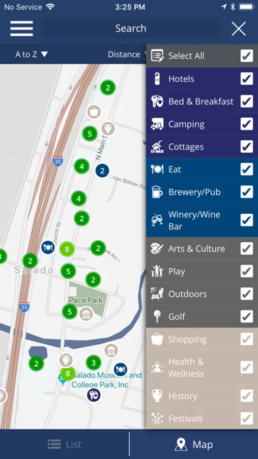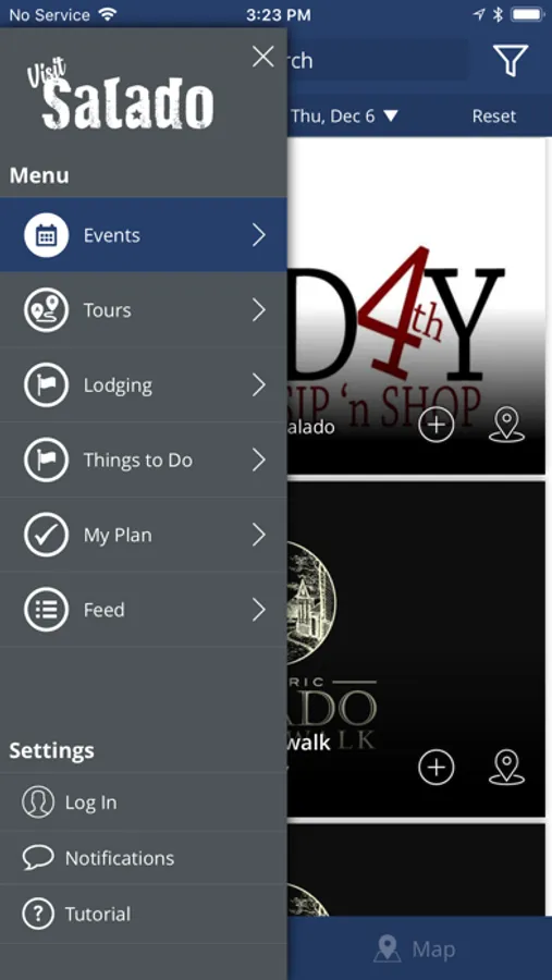 • Share events, places, and your custom plan with friends so they can join you in Salado!