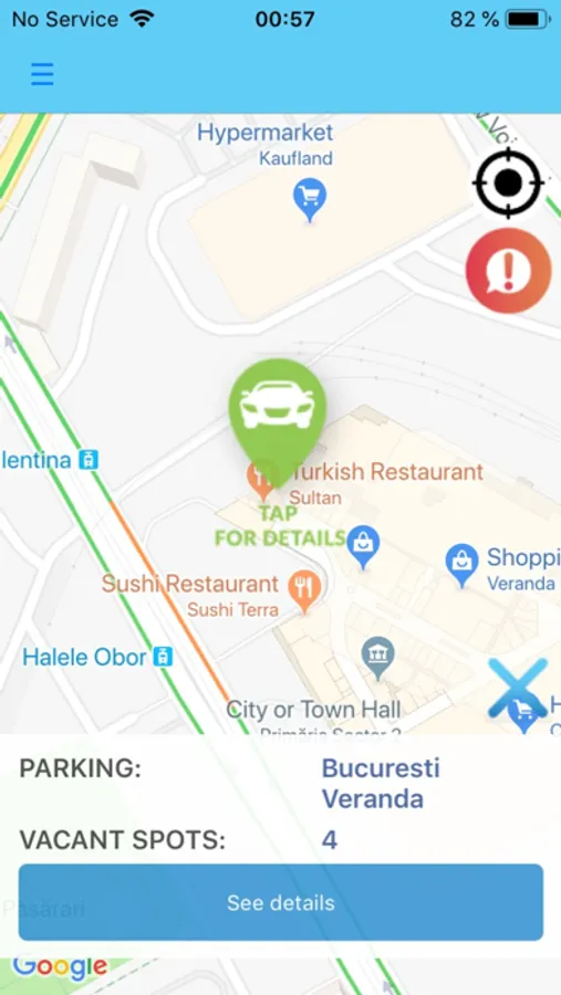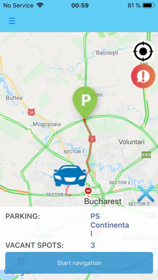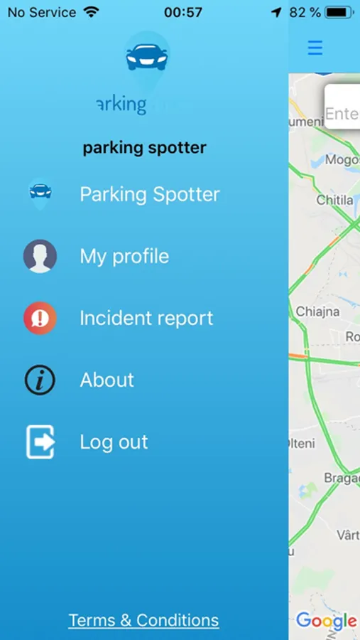 Parking Spotter Mobile App allows users to find and book free parking spaces, then drive to those reserved spaces in order to park their vehicles.