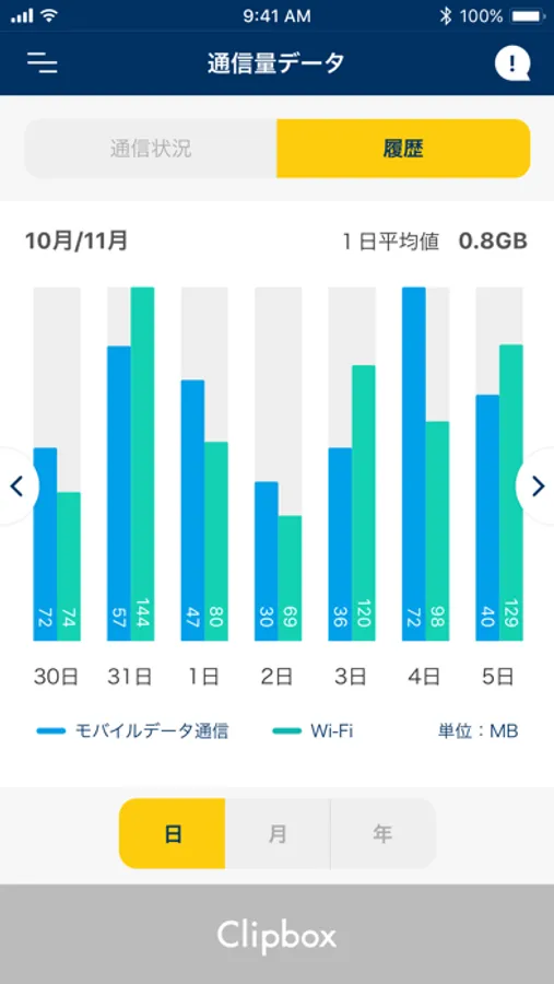 ・Graphically display the history of traffic (mobile, Wi-Fi)