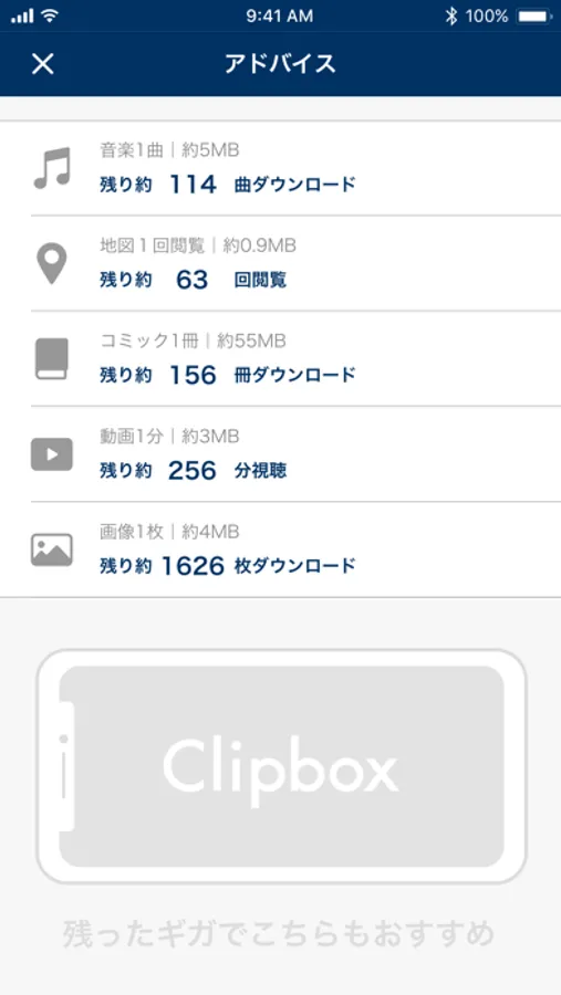・Advice (display remaining time of music and movies etc.) is displayed according to the remaining traffic volume