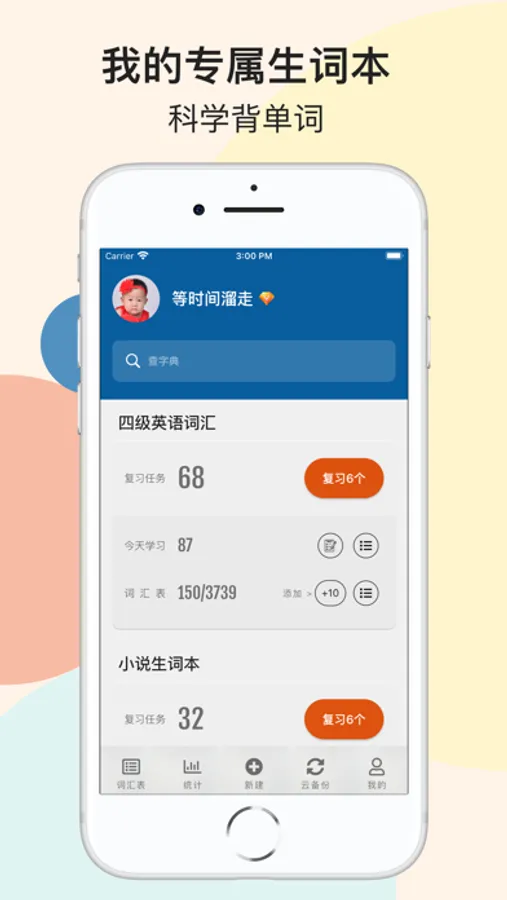 根据斯宾浩斯遗忘曲线制定复习计划,自动提醒,科学背单词,让背单词不再痛苦,记忆更加牢固。